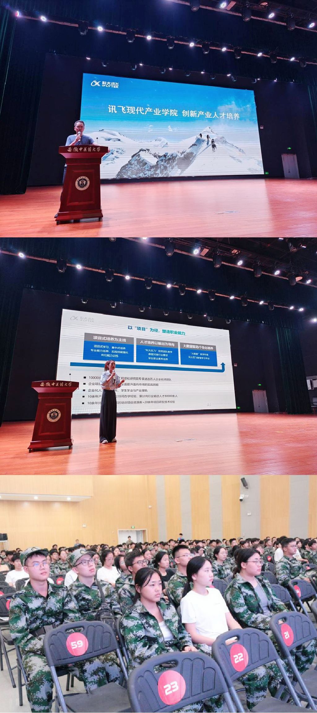 阚峻岭介绍了讯飞现代产业学院基本情况,近年来学院注重产教融合、校企联合,加强学生的实践能力、产业能力和职业素养教育,将教育链、产业链、创新链三链融合不断提升人才培养质量。