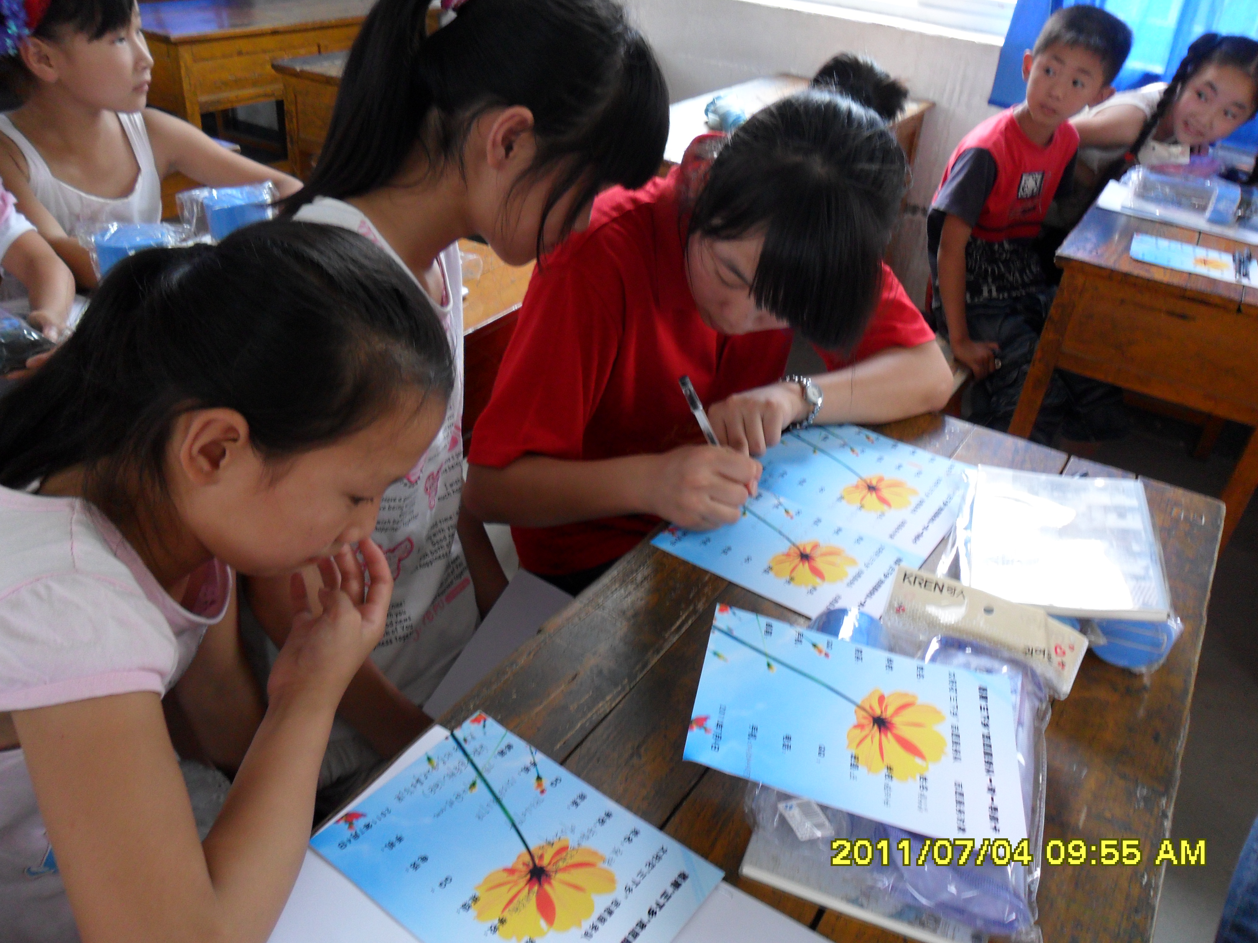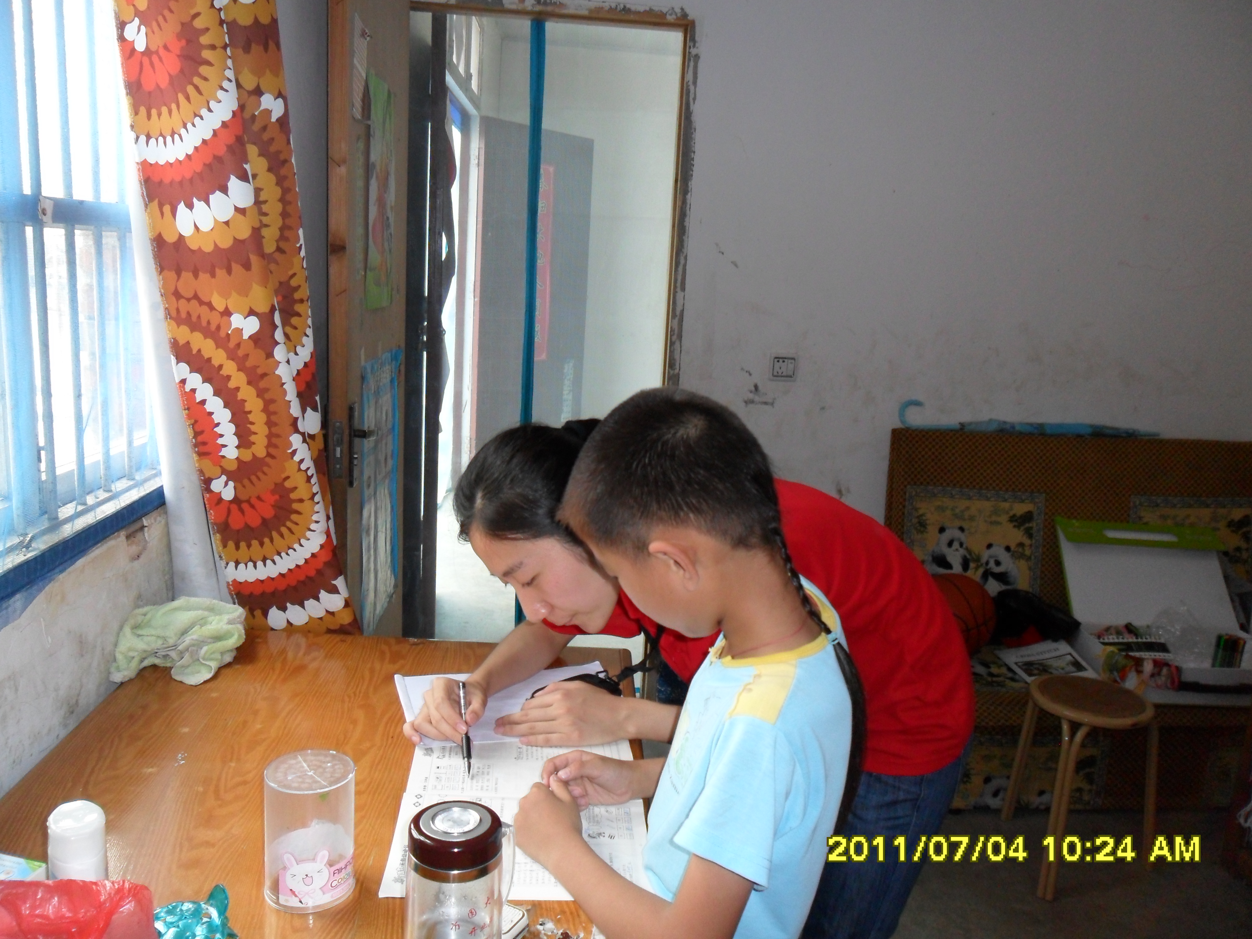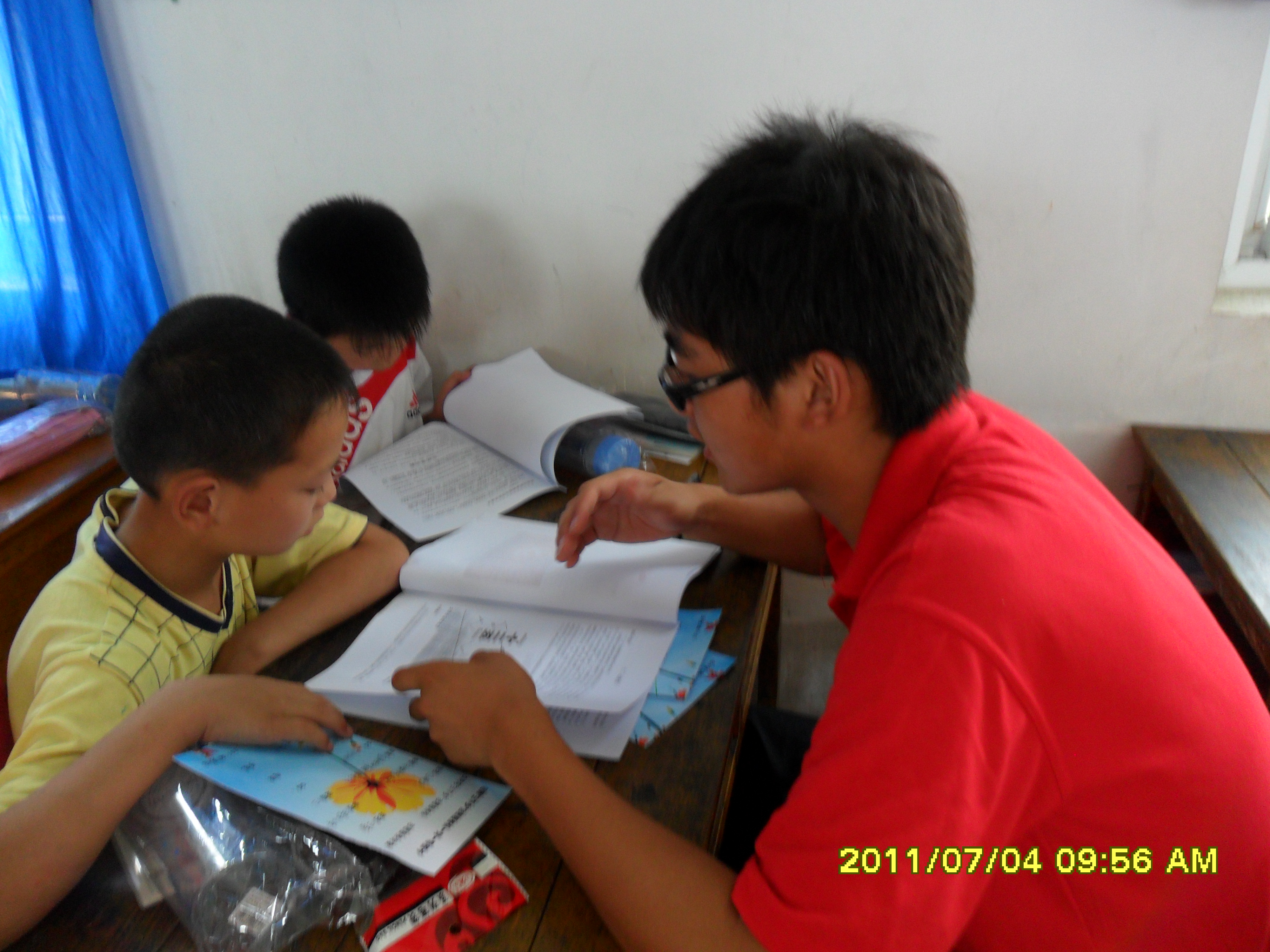 两天的实践活动中,服务队以舒城县晓天镇中心小学为实践基地,在镇中心小学举行简单的启动暨捐赠仪式后,开展了以义务支教,科学调研为主题,以“走进乡镇、了解乡镇、帮助乡镇”为主要内容的一系列社会实践活动。在指导老师的带领下,队员们冒着38℃高温,先后为中心小学的学生们举办了安全知识与疾病预防讲座;向学生们捐赠图书和学习用具;深入到当地农村,通过所到之处的学校师生、学生家长和居民,考察当地农村教育资源状况;与当地20名贫困学生结成对子,并到学生家中了解其学习和生活情况,辅导学生做好暑假作业。在依依惜别这时,队员们纷纷表示,要长期帮助那些贫困学生搞好学业。