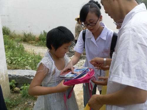 服务队还深入黄甲村敬老院开展志愿者服务活动,大家纷纷与老人握手聊天,并为老人们送去了大量的常用药品,还为每一位老人测量了血压,告诉他们一些养生保健知识及一些常见病的预防措施。同时,“三下乡”服务队在当地领导的带领下,携带着为留守儿童购买的学习用品,挨家挨户的为留守儿童们送去关爱。