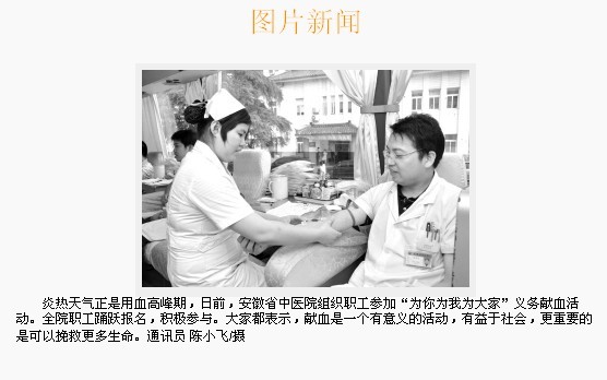 日前,合肥市献血办公室授予我校一附院无偿献血先进组织奖。8月22日,中国中医药报也对该院无偿献血活动进行了报道。