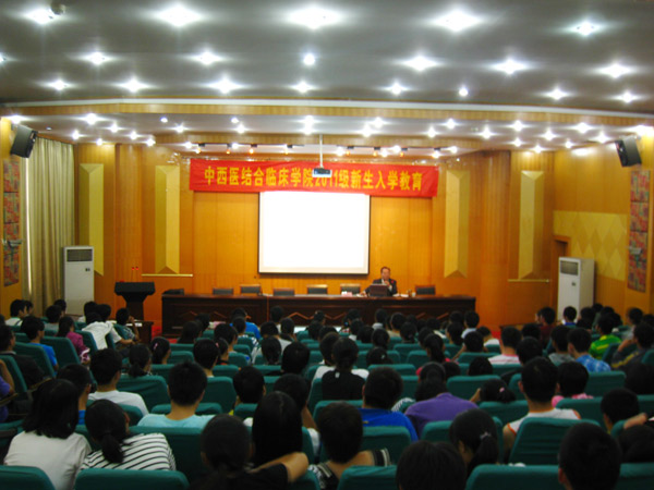 为使新生尽快适应大学生活,明确成长成才方向,9月23日,中西医结合临床医学院进一步开展2011级新生入学教育,校招生就业处副处长孟庆全、该院党总支书记吴成长分别为新生作“大学生职业规划――为你打造精彩人生”、“海阔凭鱼跃,天高任鸟飞――我的大学我做主”主题讲座,该院党支部副书记顾义俊主持讲座。