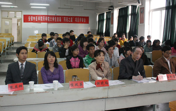 10月26日下午,药学院举行首届“安汀”药苑之星大学生科研项目答辩会。会议特别邀请到了王效山教授、戴敏教授、鲁传华教授、汪宁教授、王德群教授、桂双英教授、谢晓梅教授、汪电雷副教授和张亚辉副书记组成了专家组评审团。