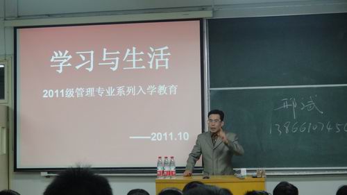 10月25日晚,医药经济管理学院新生入学教育系列“学习与生活”讲座在杏林楼201教室举行,经济学教研室主任邢斌主讲。