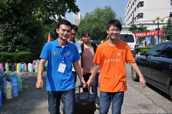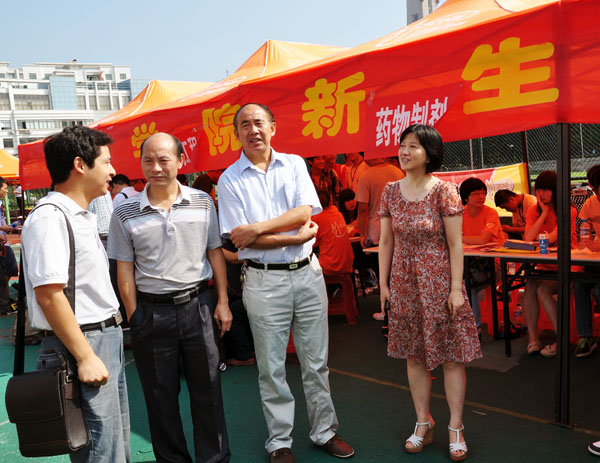 药学院党总支书记方成武、院长戴敏、副院长金传山、副书记张亚辉等7日一大早就来到迎新现场,督导检查迎新工作,向参加迎新工作的志愿者们详细询问了迎新情况,要求大家一定要将迎新工作做好,为前来报到的新生提供最周到的服务。该院领导还与新生及家长进行了亲切的交谈,并热情的回答了家长们关心的各种问题。