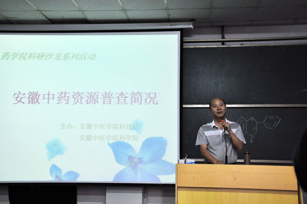 为进一步活跃学术氛围,促进学术交流,在全国第四次中药资源普查轰轰烈烈开展的大背景下, 9月19日下午,学校科技处与药学院举行了科研学术沙龙活动,活动由戴敏院长主持,药学院党总支书记方成武教授做了题为“光荣而崇高的使命――安徽省中药资源普查简况”的学术报告。药学院全体教师参加了本次活动。