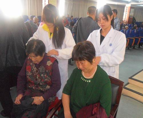 重阳节当日上午,该院学生到达瑶海社区,为社区内的几十名老人做了免费的健康服务活动。内容丰富多样,上午主要是进行为老人们量血压、按摩、提供保健养生的建议等活动。活动场面十分火爆,老人们纷纷要求要参与到活动中来。下午的活动分两部分进行,一部分志愿者进入90岁高龄老人的家中进行访视活动,为老人洗脚、按摩、整理家务,陪老人聊天,聆听老人讲述过去的故事;另一部分志愿者参与了“带着老人看合肥”的活动,组织了30名平日活动不大方便的老人们出来环城游览,看看合肥市近年来的新变化。志愿者随行向各位老人介绍沿途的各种景观,车上洋溢着喜庆祥和的气氛,亲眼见到合肥市近年来的快速发展,每一位老人都展露出发自内心的微笑,对志愿者的服务赞不绝口。