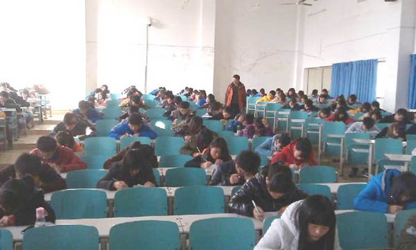 11月18日上午,工大校区举行新生入学教育测试。工大校区的近400名12级新生分设在工大翠一教102、202和翠三教102三个考场里。各班级学习委员按照K值法提前半小时进行考场的排布,维护了考试的严肃性和纪律性,保证了考试的公平公正,让每一位考生的真实水平得到了发挥。