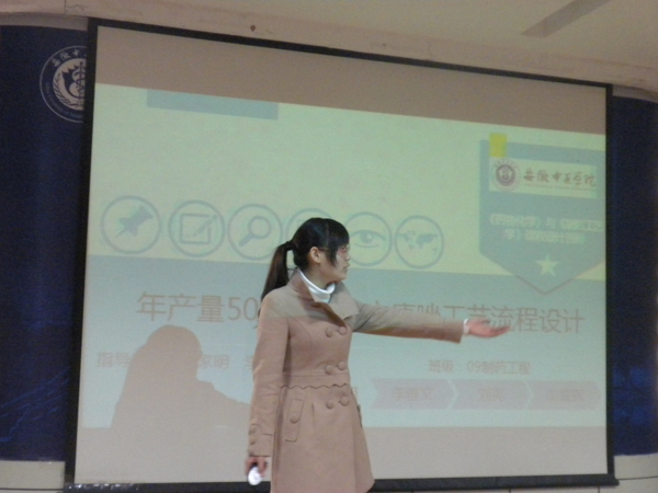 09级制药工程全体同学在李家明和李传润两位老师的指导下,根据不同的设计任务要求,分组进行相关药物化学-制药工艺一体化程设计,通过查阅文献,就相关药物研究背景,药物合成的工艺,物料能量衡算,化工设备选择,工艺设备流程等,制作了PPT进行汇报。