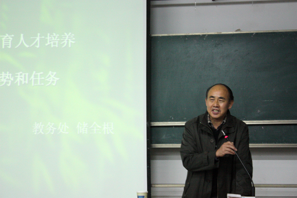 储全根解读了国家关于高校教育的新形势和相关政策,强调本科教学质量是高校人才培养的衡量标准;并结合自己的工作经历,以其高视角宽视野例举了在国家新形势下我省高等教育发展改革的新举措,包括实施高等教育强省、大力发展应用性高等教育、全面实施质量工程、全面开展本科教学评估以及我校教学改革、人才培养斐然成就等。他强调“百年大计、教师为本”,在我校人才培养面临的新任务下,老师应该了解教育形势,明确教育任务,提升教学能力,投身教学改革,保证教学质量。(方清影/文,孔成诚/图,张磊/编发)