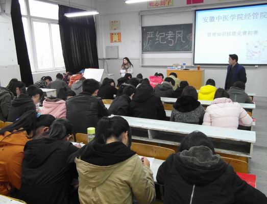 为进一步调动大学生自主学习的积极性,强化大学生基本理论与技能。11月21日下午,医药经济管理学院举行了管理知识技能竞赛初赛。该院副院长王其巨等老师到考场指导。