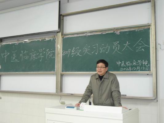 12月12日,中医临床学院召开2009级中医学专业毕业实习动员大会,学院党总支书记吴毅彪、副院长董昌武、实习秘书黄学武和年级辅导员参加了会议。