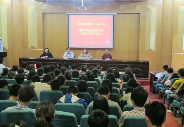 为更好地迎接校第20届运动会的召开,4月16日,中西医结合临床学院召开运动会动员大会。该院领导黄金玲、陈光亮、顾义俊和调研员龙子江出席会议。团总支负责人、各年级辅导员、全体运动员参加会议。会议由顾义俊主持。