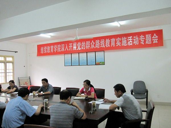8月1日,继续教育学院党总支召开党的群众路线教育实践活动动员大会。校第五督导组成员张景湖、何银安,继续教育学院党政领导班子、全体党员参加了会议。
