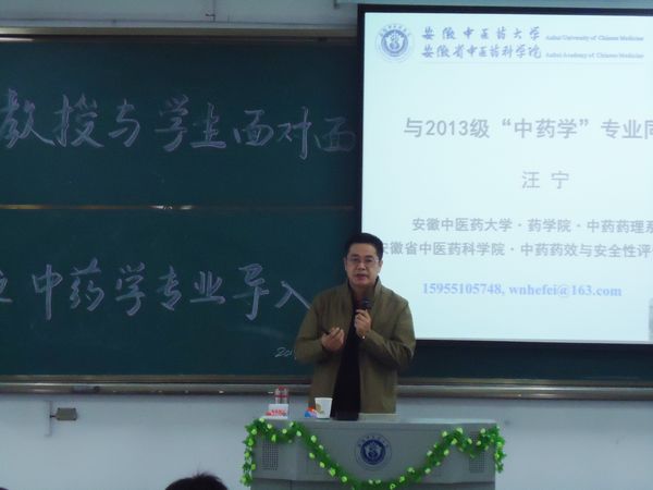 汪宁老师为2013级中药学专业全体同学详细介绍了我校中药学专业和学科的发展历史及主要科研成就,并详细的介绍了中药在我国的发展现状和发展趋势;之后汪老师又对同学们在学习中药过程所需要注意的关键问题一一点拨。最后,汪宁就大家所关心的学科发展方向及就业等与学生密切相关的问题,进行了深入浅出的互动解答。