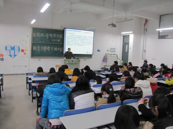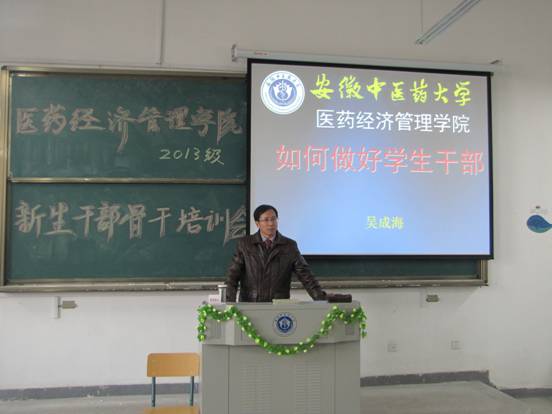 学生干部骨干是学生工作的重要力量,为了使每一位新生学生干部成为有能力可胜任的学生工作骨干,医药经济管理学院于12月11日下午举行了新生干部骨干培训会,该院党总支书记吴成海主讲,党总支副书记黄学武及部分班级辅导员参加了培训会。