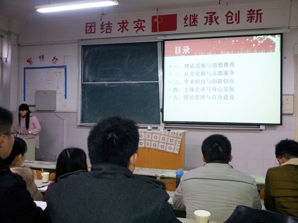 各参评班级团支部,分别从理论武装与思想教育、社会实践与志愿服务、学术科技与创新创业、文体艺术与身心发展、团员管理与自身建设五个方面展示本班级2013年度团学工作。该学院全体辅导员根据《安徽中医药大学学生团支部目标管理考评表》进行认真评议、打分。最后结合校团委“关于开展2013年学生团支部目标管理考评工作的通知”文件精神,择优推荐先进团支部上报校团委。