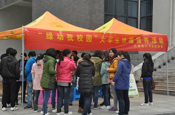 3月12日,一年一度的植树节,由校团委、校学生团体联合会主办,大学生人与自然协会承办的大学生绿植领养活动,在少荃湖校区火热举行。