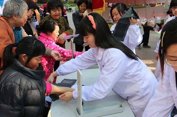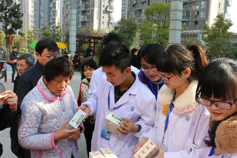 活动初,志愿者分工明确,一部分向社区居民分发《春季疾病预防及养生手册》,介绍此次雷锋活动的主题和内容并诚挚的邀请他们参加;另一部分悬挂横幅、张贴中草药标本、摆放药品等,精心布置本次活动场地。大家各司其职,顺利完成活动准备工作。活动中,志愿者微笑服务,悉心询问居民的身体状况,并向他们发放免费药品指导他们正确服用;高年级的学生热情的为需要帮助的居民测量血压、推拿按摩等,这不仅使居民身体得到放松,而且将自己的专业知识运用于实践中;更有中药专业的学生向居民介绍各中草药的特性和功效,为老年居民提供中药治病的好方法。