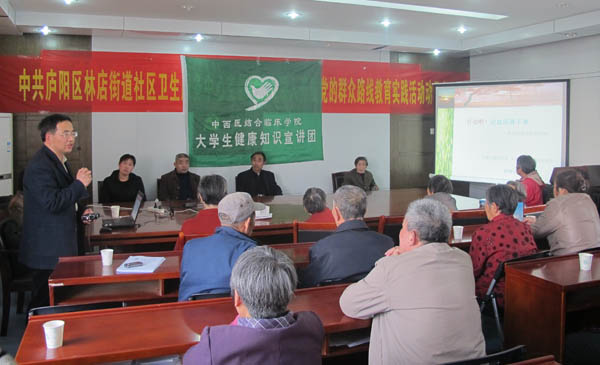 为弘扬雷锋精神,增进与社区共建合作,近日,中西医结合临床学院与合肥市庐阳区卫生局联合开展学雷锋“健康服务进社区”义诊和健康知识宣讲活动,该院领导吴成长、顾义俊、陈光亮,庐阳区卫生局和庐阳区林店社区卫生中心有关领导,亲临现场指导组织参与活动的开展。义诊活动在庐阳区林店街道尚店社居委荣凤苑小区举行。