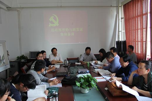 5月7日下午,我校思政部全体教师汇聚一堂,就2013--2014学年度下学期“形势与政策”专题开展了集体备课活动。集体备课由思政部主任周亚东主持。