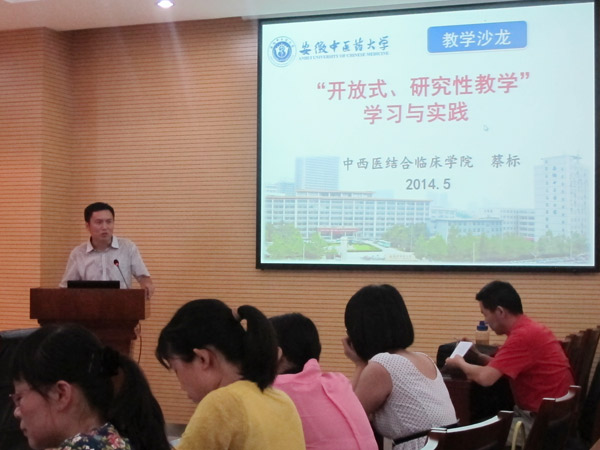 5月29日,校教师发展中心、中西医结合临床学院联合举办了主题为“‘开放式、研究性教学’学习与实践”的教学沙龙。校首期青年骨干教师教学高级研修班的全体学员、中西医结合临床学院的全体老师参加本次教学沙龙。