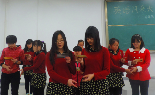 11月12日晚,药学院举行英语风采大赛。14级的8个新生班队伍参赛。