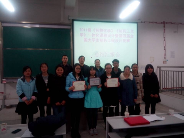 参加全国制药工程设计竞赛和药物化学-制药工艺学课程一体化设计是省级制药工程特色专业和卓越制药工程师培养计划的重要组成部分和研究内容。通过竞赛和课程设计的开展,以期达到提升学生“三种能力和两种素质”的目的,即:获取和利用信息的能力、计算绘图展现能力、多学科知识综合运用能力;创新思维素质、团队协作素质。(药化系)