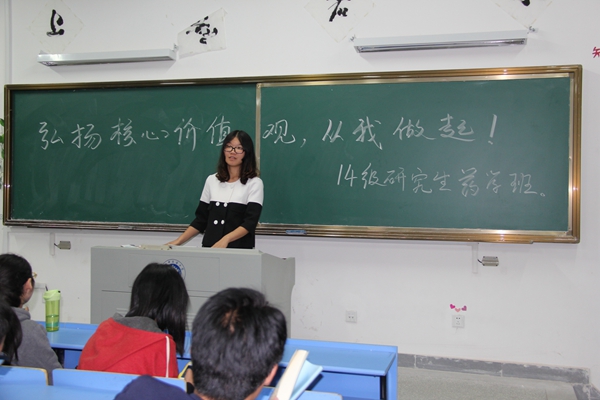 为深入贯彻党的十八大精神和习近平总书记五四重要讲话精神,响应校共青团委员会组织的全校学生骨干参与“我为核心价值代言”活动的号召,10月20日晚,2014级研究生药学班组织了“弘扬核心价值观,从我做起!”主题的交流会。