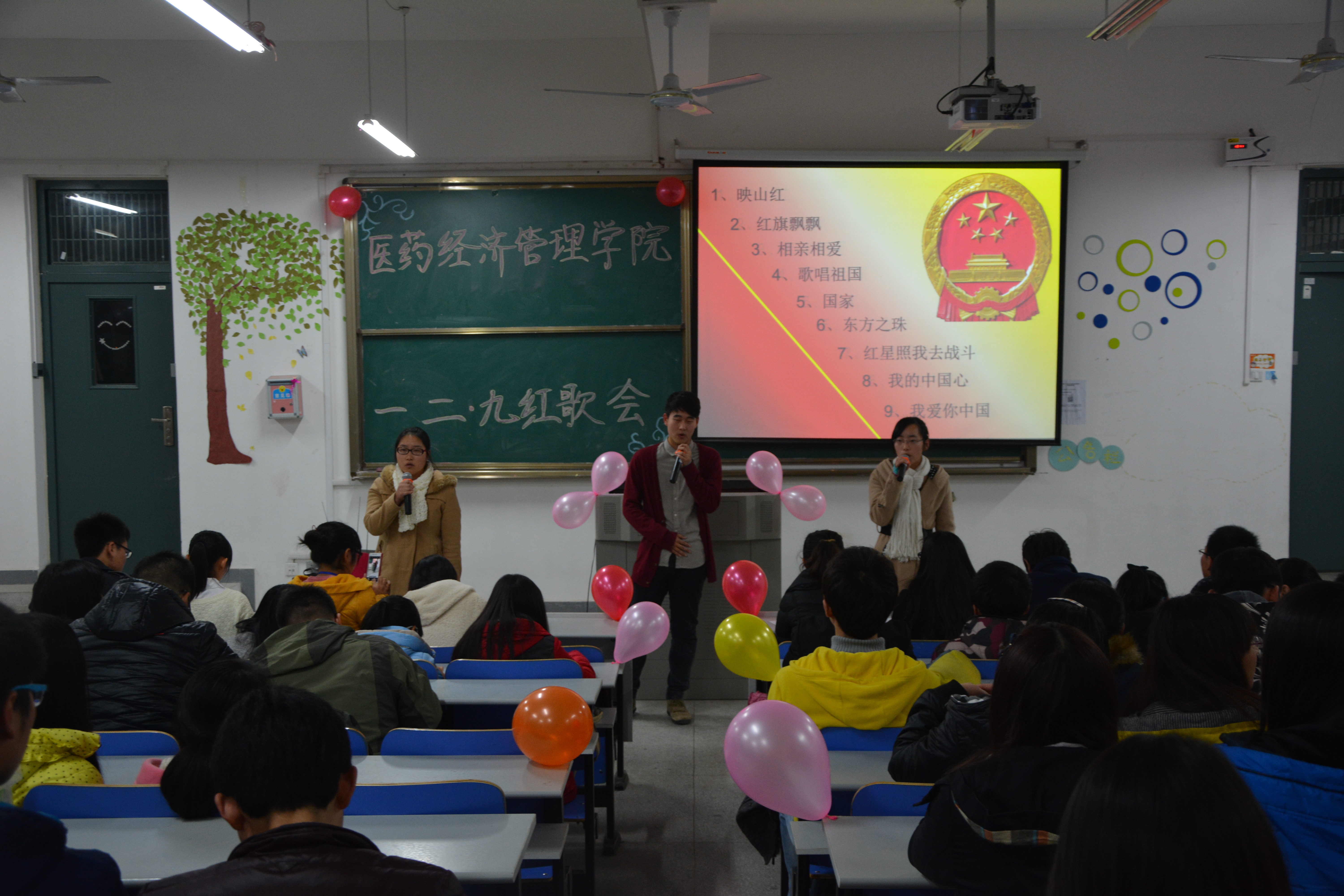 为纪念“一二・九”抗日救亡运动,践行社会主义核心价值观,医药经济管理学院于12月9日晚举办了“一二・九”红歌赛活动。