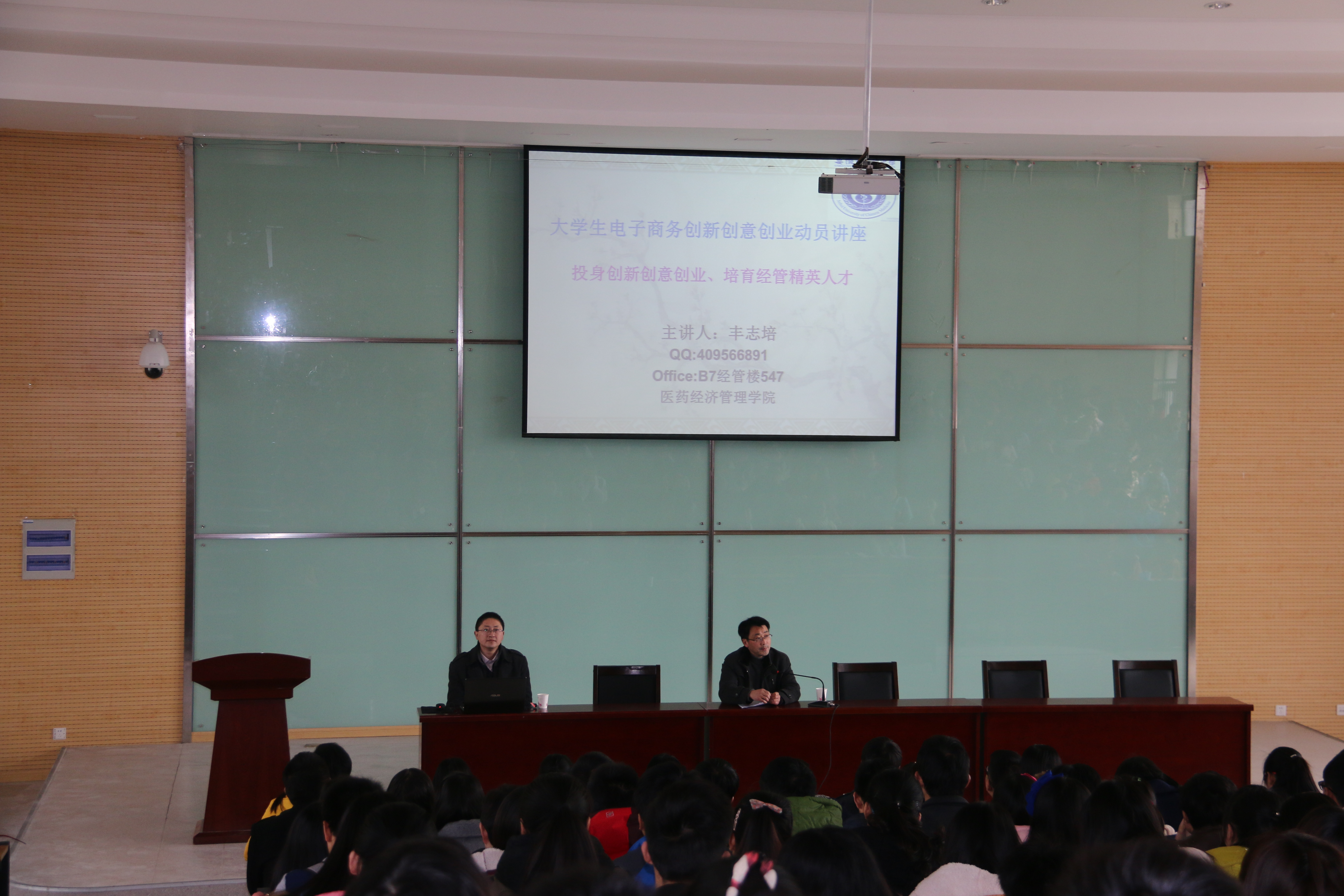3月11日,医药经济管理学院举行“三创”赛动员会。该院党总支副书记黄学武主持,副院长丰志培主讲。各班级辅导员、学生骨干及参赛队员参加动员会。 动员会上,丰志培首先介绍了什么是创新和创业、创新和创业的关系以及为什么要创新创业,并从有利于个人成长实现个人价值、增加就业机会、缓解就业压力等方面,肯定了大学生创新创业的价值。他从各方面分析了大学生创新创业的优势和劣势,鼓励广大学生积极创业、迎接挑战。丰志培还从什么是电子商务、参赛对象、报名方式、大赛主题等方面,系统介绍了电子商务三创赛的情况,并对促进大赛准备工作提出了要求。