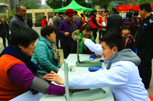 活动现场气氛火爆,现场志愿者们各司其职,有条不紊。部分志愿者自发地为社区居民测量血压血糖,并义务为社区老年居民按摩推拿;部分志愿者们向在场的老年人普及养生保健常识,带领他们参观在现场展出的植物腊叶标本、中药药材标本。此外,志愿者还向前来接受义诊的居民免费发放了品种丰富的家庭常用药品,并热心地向他们讲解了药物的用途用量。同学们热情细致的服务得到了居民们的一致好评。活动期间,在现场志愿者和煦如春风般的笑容的感染下,社区居民们不仅收获了身体上的健康,更获得了精神上的愉悦。