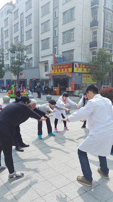 清晨,该院一行人迎着朝阳于上午8:00来到社区,为社区人民测量血压、健康保健指导,并为群众进行按摩和拔罐服务。活动还安排了五禽戏教授,社区群众认真学习并纷纷表示五禽戏对锻炼身体十分有用,要坚持锻炼。