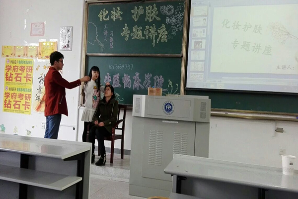 为迎接女生节的到来,中医临床学院于3月6日下午在少荃湖校区A108教室举办了“化妆护肤”专题知识讲座,吸引百名学生尤其是女生的广泛关注和积极参与。