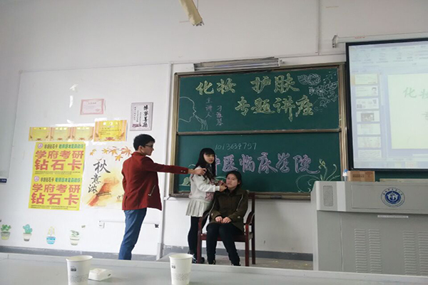 本次讲座请来专业美容养生顾问若干名,从日常护肤问题入手,积极解答大家提出的问题。在讲解化妆技巧时,更是现场做起了示范。为了使大家更好的掌握化妆技术,中医临床学院学生会还精心准备了化妆小游戏,使现场气氛达到了高潮。