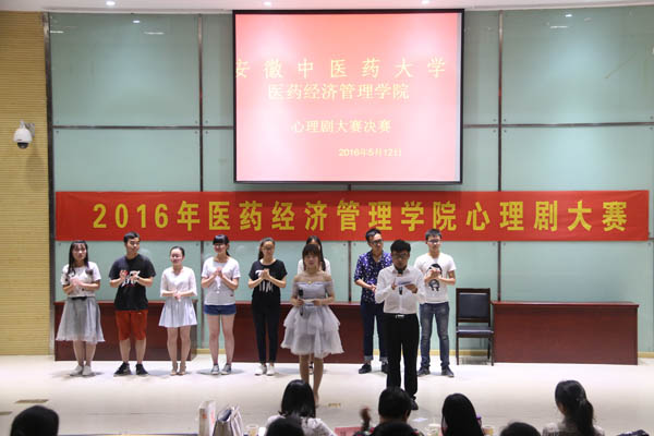 为迎接“5.25”世界大学生心理健康日,普及大学生心理健康知识,丰富同学们的课余生活,5月12日,医药经济管理学院在公共教学楼B301大礼堂隆重举办心理剧大赛。全院共有8只队伍参加比赛,心理咨询中心胡霞老师、经管院心理学教研室陈军老师、团总支负责人范思敏老师以及学生处褚珉老师出席本次大赛并担任评委。