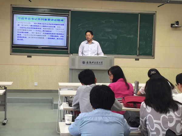 报告中,周亚东说,习近平总书记的系列重要讲话体现了“一个中心、两个基本点”。“一个中心”即实现中国梦,“两个基本点”即全面深化改革和坚持群众路线。习近平总书记的重要讲话是一个不断发展的,开放的理论体系,学习贯彻习近平总书记重要讲话精神是一个持续推进、逐步深化的过程。讲话精神集中论述了铸造社会主义道路第五座里程碑的科学内涵和途径,以实现中国梦为精神旗帜、以“两个一百年”奋斗目标、以四个全面协调推进的战略布局为根本、以五大发展为具体路径、以“一带一路”为内外连接、以加强党的领导与全面从严治党为保证,站在一个新的发展起点上,实现中华民族伟大复兴。周亚东认为,学习系列讲话的落脚点是“学用结合”,要将理论武装、理论应用、理论创造应用于实践创新;“两学一做”的本质是发展,就是要在“两学”中做合格党员。