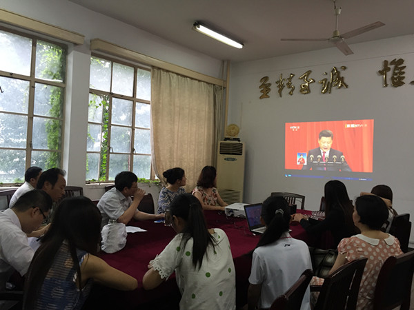 通过收看中央庆祝建党95周年大会实况,全体党员进一步坚定了理想信念,牢记责任担当,以受表彰的先进集体和优秀个人为榜样,认真学习领会总书记的讲话精神,扎实开展“两学一做”,结合实际工作岗位,以行动向建党95周年献礼。(宋婷婷/文图)