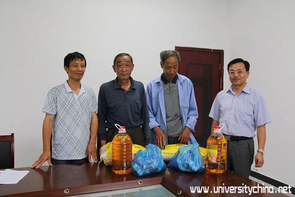吴达武详细询问老党员的家庭受灾情况,并代表药学院三下乡服务队给老党员们赠送了米、油、鸡蛋等生活用品,以表达我们对老党员的关心和慰问。同时对老党员辛苦劳动于一线,扎实工作一辈子的优良作风表达了崇高的敬意。