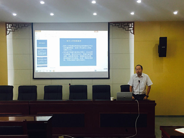 9月7日下午,学校召开2016年学生工作业务培训会,对2016年新生班级辅导员开展业务培训。本次培训是学校2016年辅导员培训工作内容之一,旨在促使新生班级辅导员掌握学生教育管理工作技能,尽快进入角色,成长为一名合格的辅导员。培训主要内容包括学生党建工作、创业规划、校园安全、学生收费工作、共青团工作、考务管理、学籍学历等7个专题讲座,由学校组织部、招生与就业处、财务处、保卫处、、团委、教务处、学生处7位领导老师分别主讲。2016级新生班级辅导员参加了培训。