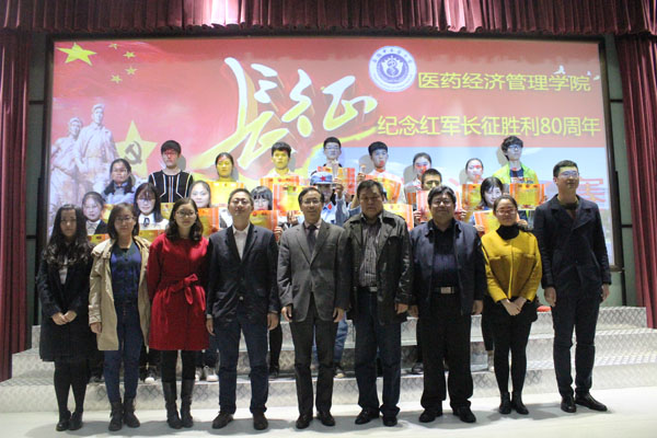 10月27日下午,医药经济管理学院在A114报告厅举办纪念长征胜利80周年诗歌朗诵比赛。学院党总支书记吴成海、院长魏骅、校招生与就业处副处长孟庆全、副院长丰志培等担任比赛评委。