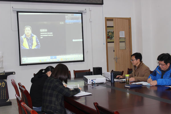 学习会上,吴成海结合视频短片带领大家学习先进典型胡太平“大山里的中国梦”优秀事迹。胡太平作为党的基层领导干部,带领芜湖南陵县龙山村村民解决行路难、吃水难、致富难等问题。他通过与药厂多方联系,最终确定合作规模化种植凤丹、太子参药材,帮助村民改善经济生活。除此之外,胡太平的“十二五”规划还有新点子。“我打算明年扩大山核桃的种植面积,这样能做到村民收入多元化。”他还打算开发旅游资源。“比如扩大景区,组建农家乐,总之就是走特色,挣的钱都归老百姓!”在胡太平的心中“为人民服务”的信仰坚如磐石,彰显了共产党员最真诚可贵的品质。