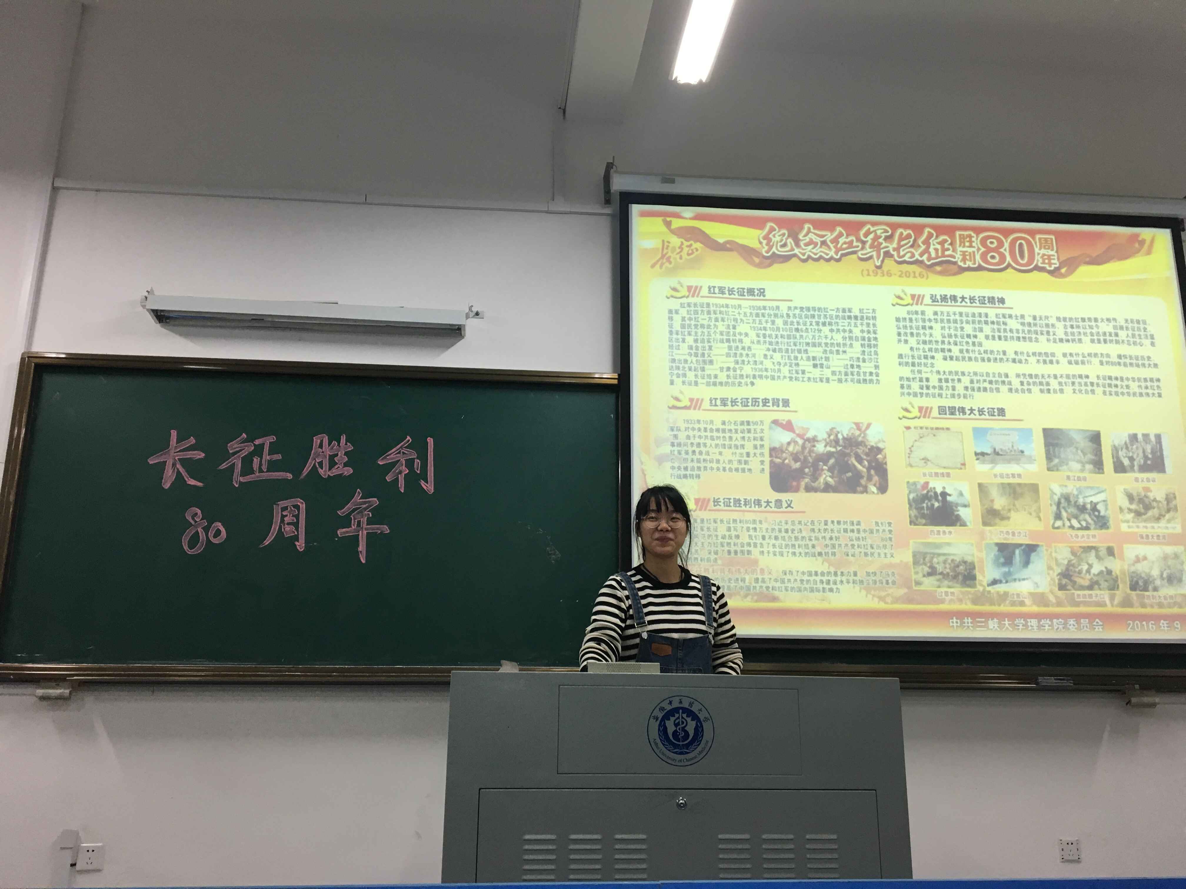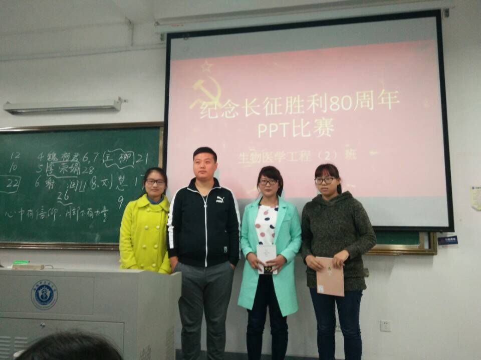 为认真贯彻落实团发[2016]27号《关于开展纪念红军长征胜利80周年主题教育活动的通知》精神,大力弘扬伟大的长征精神,树立青年理想信念,提升班级团支部活力,10月25日-11月4日,医药信息工程学院各班级团支部按照团总支统一部署,积极开展“纪念长征胜利80周年PPT比赛”主题团日活动。