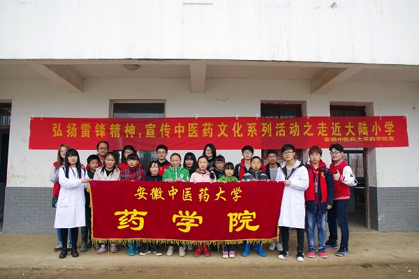 药学院通过“中医药文化进校园”、“中医药文化进社区”、“绿色校园,低碳生活”专题志愿服务,三个层面组织了多场具有中医药文化特色的系列活动。通过讲述中医药科普小故事,举办食品安全教育讲座,让学生亲身接触、体验中医、中药,进行卫生知识自我防护教育等,组织学生走进校园组织开展宣传中华民族传统文化。组织大学生志愿者走进社区宣传中医药文化知识,健康养生理念,进行义诊活动,推动中医药传统文化进社区。组织同学们走进食堂、宿舍宣传健康、环保生活理念,倡导节约用电、用水,节约粮食的生活方式;积极参加学校和周边地区植树护绿活动。