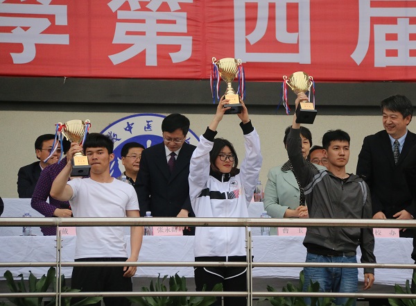 4月20-21日,安徽中医药大学第四届田径运动会在少荃湖校区体育场隆重举行。此次运动会,药学院共派出70余名运动员,参加了二十八个项目的角逐。闻鸡起舞,终有所获,经过两天紧张激烈的比赛,他们打破了3项校运会记录,并以总分331.5获得了团体第一名的好成绩。