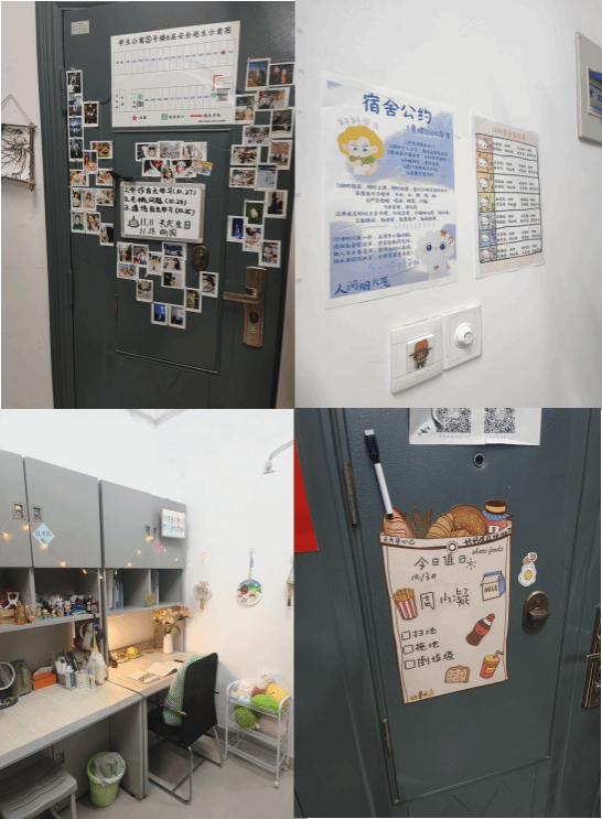 此次比赛面向硕博在内的全院全体学生,以“创文明宿舍,建美丽校园”为主题,要求参赛宿舍践行低碳环保理念,营造积极向上氛围,发挥朋辈引领作用,形成“比、学、赶、帮、超”良好风气。各寝室赛前精心布置,创意十足。在走访过程中,评审老师从各宿舍现场讲解、整洁度、文化氛围、创意布置等方面综合考量打分。在走访完所有宿舍后,对评委评分进行统计,并推荐优秀寝室参加校级评比。