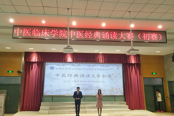 为响应2017年大学生中医药文化节号召,促进我院中医药文化发展,营造浓厚的中医经典学习氛围,5月5日下午18点,我院于少荃湖校区A114报告厅举办中医经典诵读大赛初赛。