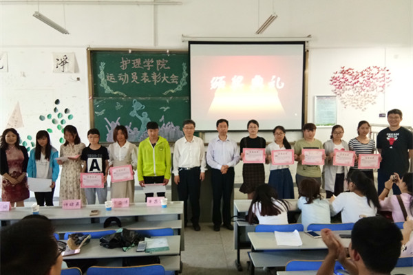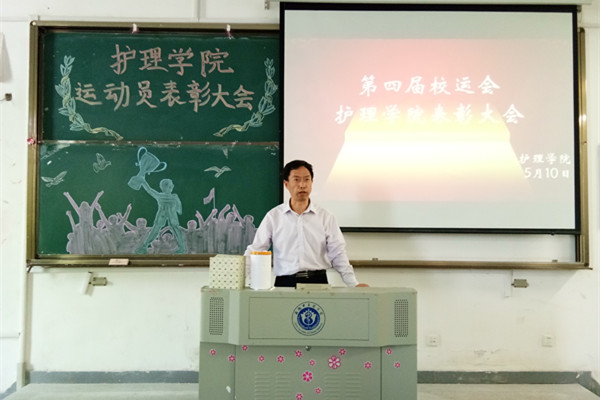 5月10日,护理学院在公共教学楼A113召开了第四届校运动会护理学院表彰大会。党总支书记牛忠军、院长方正清、党总支副书记许晓燕、副处级辅导员方晓以及全体运动员均出席会议。