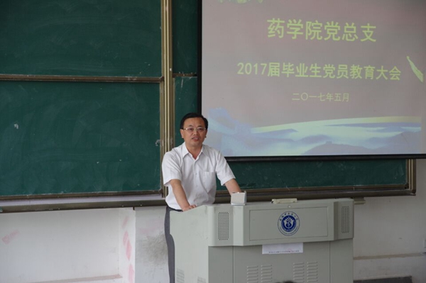 为扎实推进“两学一做”学习教育常态化制度化,切实增强毕业生党员的党性意识和组织观念,引导广大学生党员“讲政治、重规矩、作表率”,做好2017届毕业生党员离校前的有关工作。5月24日下午,药学院党总支于少荃湖校区召开2017届毕业生党员教育大会。学院党总支书记吴达武、副书记金晓琴出席会议,各学生党支部书记、毕业班辅导员及2017届全体96名毕业生党员参加会议,会议药学院党总支秘书由任亚硕主持。