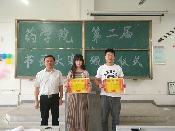 此次大赛共分作品征集、现场创作以及作品评比三个环节,比赛项目分为书法类和绘画类。活动得到了同学们的大力支持,前期共征集136幅作品,作品风格迥异,创意鲜明,匠心独具。决赛以自由创作的形式在现场进行,经过两个小时的比拼,一幅幅别具一格、力透纸背的书画作品跃然纸上。最终,书法组16生物制药潘瑾获得一等奖,16药分李瑞杰、16药学吴晏杰获得二等奖,16制药工程卢雨辰、15食品黄碧君获得三等奖;绘画组16生物制药胡纳源获得一等奖,16制药工程卢雨辰、16药剂冯雪祥获得二等奖,16中资高尚、16中药杨心怡获得三等奖。15食品班宣传委员黄碧君获得“最佳宣传委员”称号。