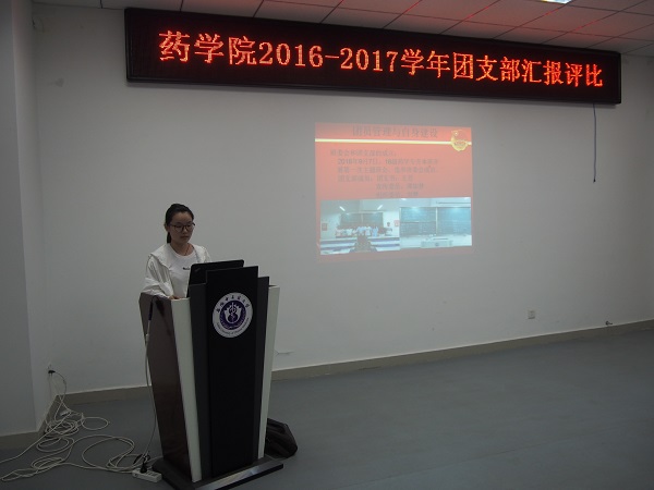 为了加强各班级团支部建设,6月5日晚,“药学院2016-2017学年团支部汇报评比大会”在药学院313会议室举行。研究生院辅导员张�,中西医结合临床学院辅导员云大清,针灸骨伤临床学院辅导员丁仙,药学院党总支副书记金晓琴、团总支负责人黄伟军出席本次大会并担任评委。